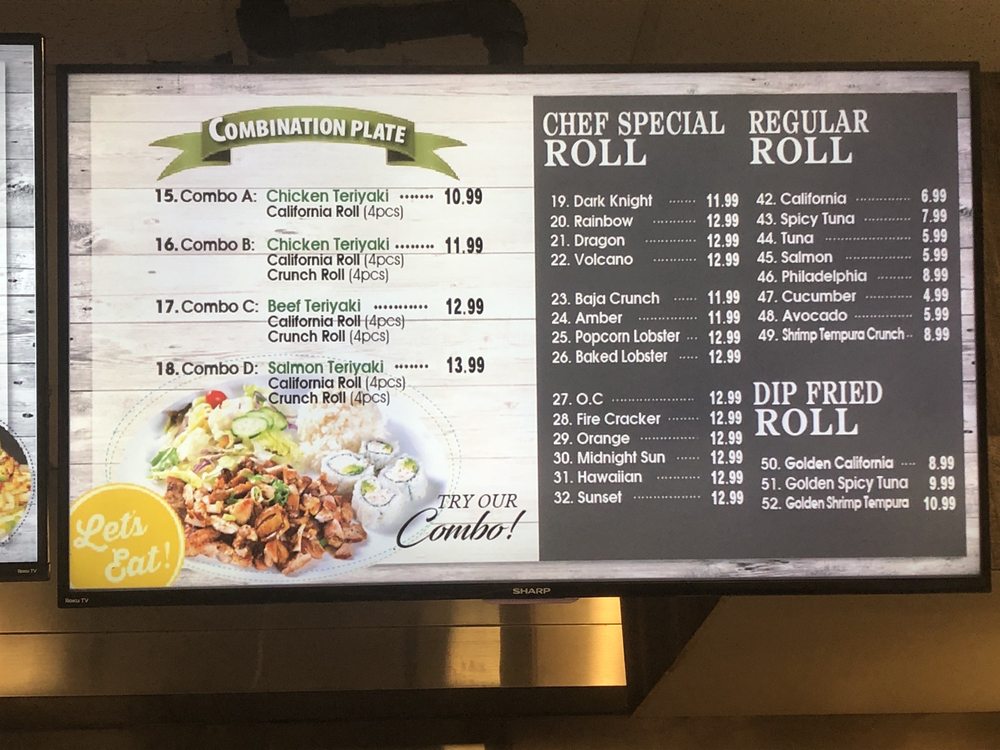 Start your meal with tantalizing appetizers like crispy Egg Rolls and savory Gyoza. For main courses, their Teriyaki and Sushi Roll Combos delight with options like Chicken and Salmon teriyaki paired with flavorful California and Crunch rolls. The fresh ingredients and bold flavors make every bite a joy.